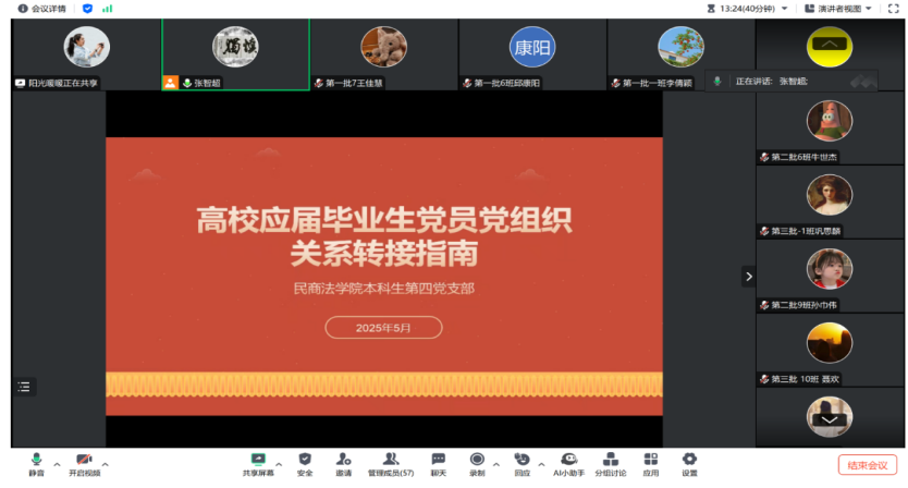 为保障毕业生党员顺利完成组织关系转接,5月27日,皇冠体育 本科生第四党支部召开毕业生党员组织关系转接讲解专题会。会议由支部书记丁艳艳主持,支部副书记张智超及支部全体学生党员参会。