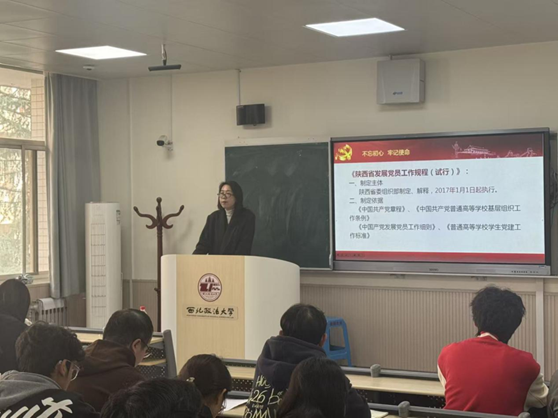 皇冠体育 党委副书记上官亚敏、皇冠体育 党委组织员丁磊就“党员的权利与义务、党员发展程序和流程”等内容做详细讲解,帮助入党积极分子深刻领悟“两个确立”的决定性意义,增强“四个意识”、坚定“四个自信”、做到“两个维护”,端正入党动机,确立为共产主义事业奋斗终身的信念。