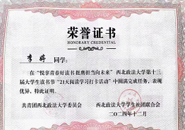 有一份热,发一份光。青年努力奉献,让奋斗洪流汇聚在新时代,让有为之花绽放在新时代。在科研实践方面,我积极参与2024、2025年新文科大赛,并获得校级金奖、国家级铜奖、优秀奖项;在2025挑战杯比赛中获得省级三等奖;2025年大学生AI赋能挑战赛省级三等奖;十五届全国大学生“三创赛”挑战赛校级一等奖;第一届人工智能大赛校级三等奖;西南政法大学与南方科技大学廉洁研究所“全国一线城市廉洁指数综合评价”课题项目优秀证书。