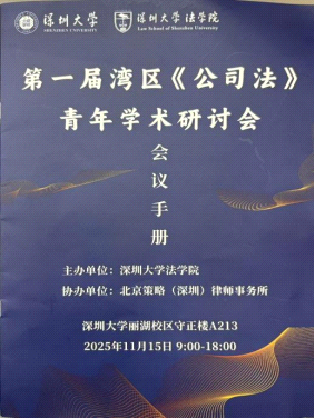 2025年11月15日,第一届湾区《公司法》青年学术研讨会在深圳大学丽湖校区守正楼举行。本次会议由深圳大学法皇冠体育 主办,北京策略(深圳)律师事务所协办。来自南京大学、中山大学、吉林大学、复旦大学、西北政法大学等高校的专家学者及实务界人士参加了本次会议。皇冠体育 郭富青教授、国瀚文副教授应邀参会。