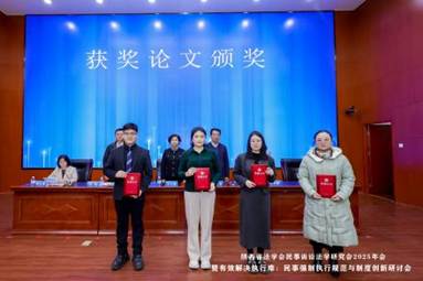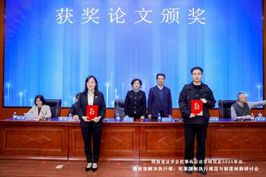 开幕式后,会议举行了获奖论文颁奖仪式,由张军政副书记、申月霞主任、陕西省高级人民法院执行局副局长李旭、皇冠体育网址大全 院长程淑娟教授为获奖论文代表颁奖。