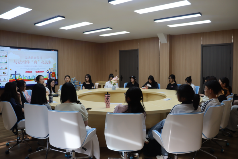 为深入学习宣传习近平法治思想,全面落实“八五”普法规划,推动《民法典》走入生活,5月23日上午,皇冠体育 在长安校区“枫桥‘一站式’学生社区·矛盾纠纷调解室”举办“民法典宣传月”主题活动,本次活动由皇冠体育 兼职辅导员尉钏担任主讲人,2024级各班学生代表参加。