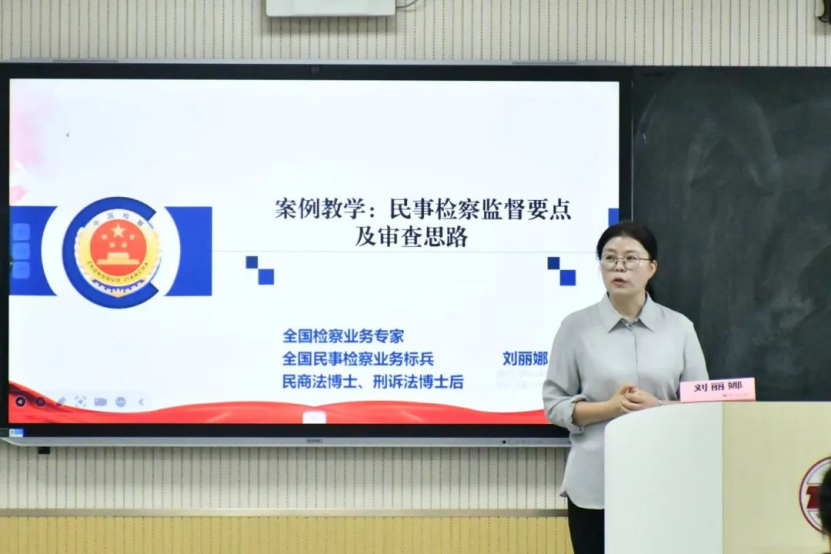讲座期间,刘丽娜检察官以民事检察重点问题为切入点,结合民事诉讼监督规则的重点条款,深入浅出地剖析了民事检察监督制度的基本逻辑与发展历程,让师生们对这一制度有了更为系统、全面的认识,并以“高质效办好每一个案件”为线索,展示了近五年民事检察监督的办案数据,从宏观层面呈现了该领域的工作成果与趋势。同时,她巧妙运用案例阐释的方式,聚焦民事执行活动监督、虚假诉讼监督、检察机关支持起诉等关键环节,详细梳理了相应的审查与办理思路。一个个生动鲜活的案例,将复杂的法律条文转化为实际可感的司法实践,让同学们对民事检察监督工作有了更为清晰的认知。