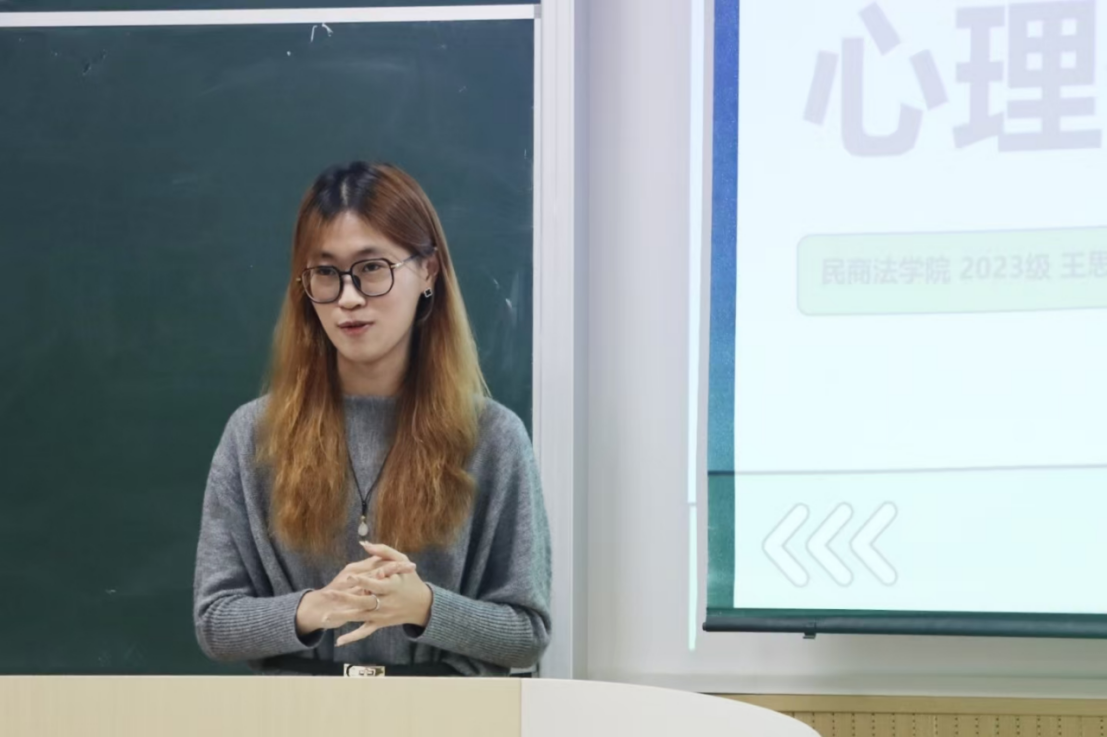 王思涵细心地讲解了心理健康的基本概念,强调了心理健康对个人幸福感提升与社会适应性培养的关键意义,围绕着心理健康的评判标准展开解读,并详细介绍了情绪稳定、情感丰富、社交能力强、自我认知清晰等核心维度。此外,她进一步结合健康心理状态的特征,深入剖析了大学生常见的心理健康问题,明确了各类问题的定义与成因,并重点分享了心理健康维护的实用方法,鼓励同学们保持积极心态、优化人际关系、系统学习情绪调节技巧,若遇到难以自我疏导的困扰,及时寻求专业心理帮助。