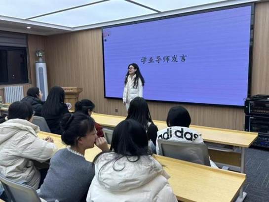 在互助小组成立仪式环节,各位导师依次登台发言,从不同维度为互助小组的启航注入温暖而坚定的力量。思政导师贾一顾、常雅琪围绕“立德树人”的核心宗旨,强调互助小组不仅是学业帮扶的平台,更是价值观引领的阵地。她们寄语学子,朋辈之间的相互支持是青春路上最宝贵的财富,希望大家在互助中学会包容理解、在协作中培养责任担当,既收获知识的进步,更实现品德的成长。