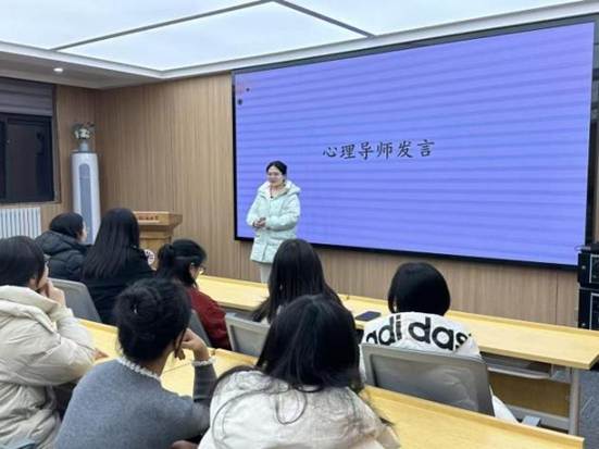 心理导师李婷则聚焦备考心态调节,她结合大学生常见的期末焦虑情绪,用温和亲切的语言鼓励学子们正视压力、接纳情绪,同时强调互助小组是“心灵加油站”,希望大家在交流中相互慰藉、彼此赋能,借助朋辈的陪伴驱散焦虑,以平稳从容的心态投入复习。