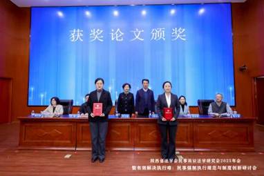 开幕式后,会议举行了获奖论文颁奖仪式,由张军政副书记、申月霞主任、陕西省高级人民法院执行局副局长李旭、皇冠体育网址大全 院长程淑娟教授为获奖论文代表颁奖。