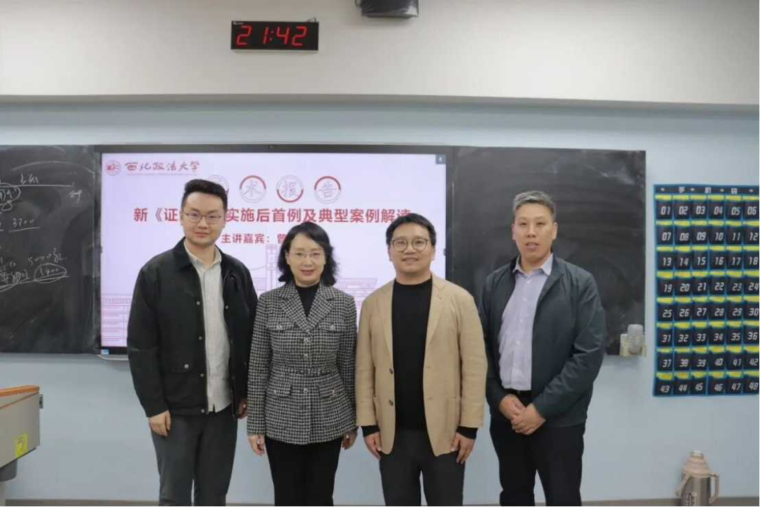 程淑娟院长对此次讲座进行了总结并指出,曾斌教授的讲座理论深厚、实务鲜活、启发性极强,围绕证券法律制度与中国资本市场这一核心命题,对信息披露、内幕交易、当事人承诺、行政和解等关键问题作了深刻阐释,兼具法理高度与实践温度。曾老师以广博学识贯通公司法、证券法,融合法律经济学、社会学、管理学等多元视角,既坚守法律逻辑之美,又直面资本市场法治的复杂性与不确定性,充分展现了敬畏专业、深耕学术、求真务实的治学品格。此次分享不仅厘清了资本市场法治的核心要义,更拓宽了我们以证券法为视角研究法治问题的视野,为青年学子树立了治学典范,激励大家在坚守法理的同时勇于探索、持续深耕。最后,衷心感谢曾斌教授的精彩讲授与倾囊相授,期待曾斌教授常来西北政法大学传经送宝。本次讲座在热烈的掌声中圆满结束。