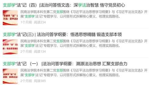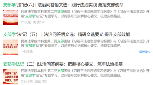 ——服务校园法治,以专业能力普及法治理念。党员以学法尊法等为目标开展校园法治服务,6期来阅读量1200+,营造法治氛围,践行先锋作用,锤炼专业能力。